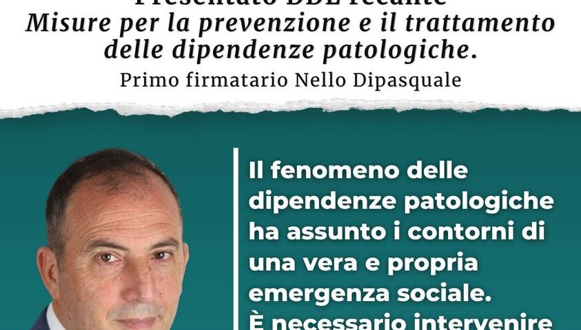 Il gruppo parlamentare del Partito Democratico all’Assemblea Regionale Siciliana ha presentato un disegno di legge, di cui primo firmatario è l’on. Nello Dipasquale, recante “Misure per la prevenzione e il trattamento delle dipendenze patologiche”. Lo scopo del ddl è quello di dotare la Regione Siciliana di norme per la prevenzione e il trattamento delle dipendenze patologiche, sia da sostanze che comportamentali, al fine di salvaguardare e tutelare le persone che ne sono affette, con particolare riferimento alle fasce più deboli e maggiormente vulnerabili della popolazione, favorendone il trattamento, la riabilitazione e il reinserimento sociale, anche tramite il sostegno alle famiglie.
