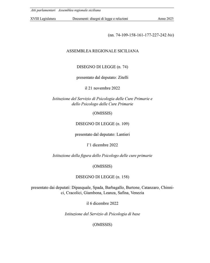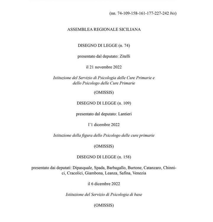 Da questo link è possibile visionare il ddl di legge sullo psicologo di base, approvato dall’ARS la scorsa settimana. https://tinyurl.com/ddl-psicologo-di-base