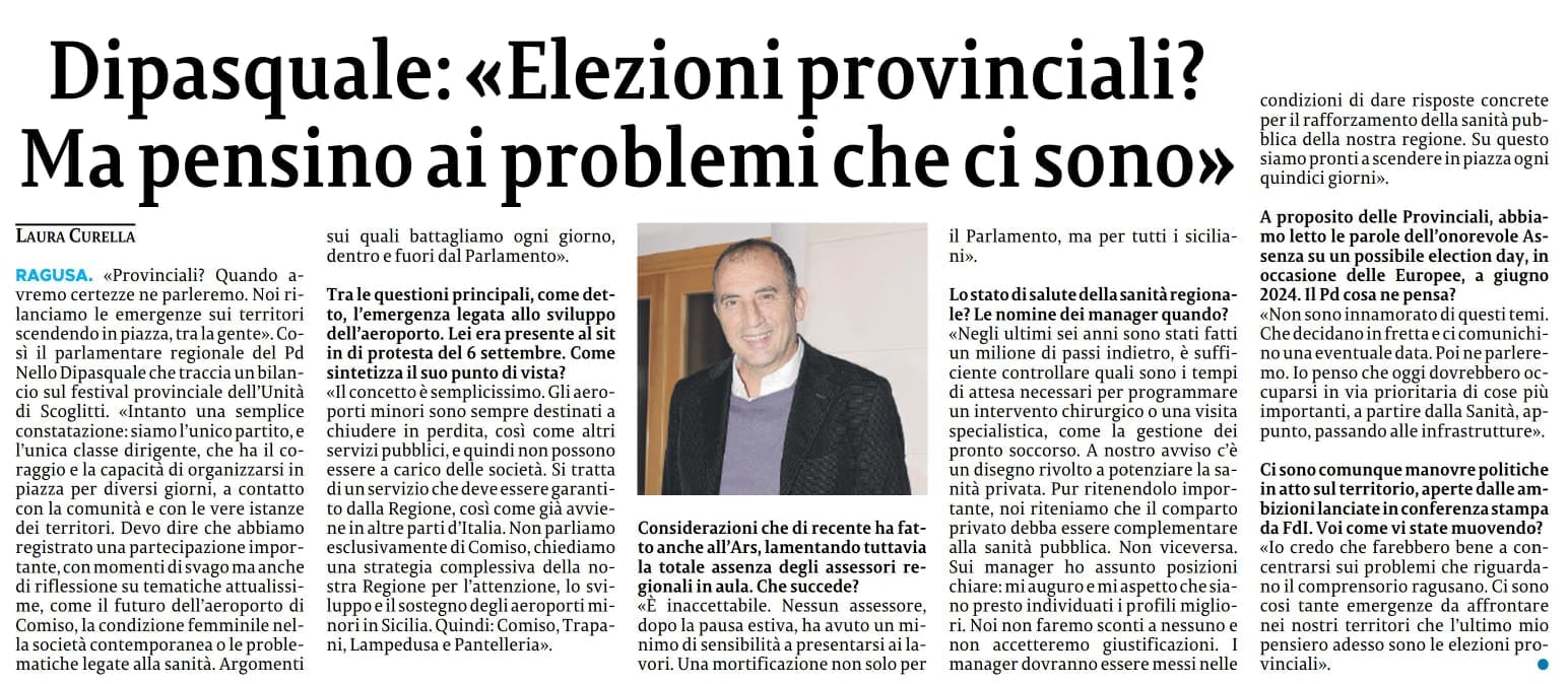 Oggi su La Sicilia la mia opinione su aeroporti, sanità ed elezioni.