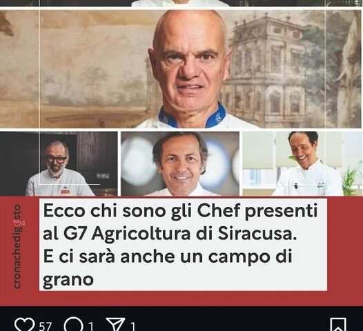 Colpo da maestro del ministro Lollobrigida per il G7 Agricoltura e Pesca che prenderà il via domani fino a fine mese ad Ortigia: dei cinque chef scelti per cucinare durante i lavori dei ministri dell’agricoltura del forum intergovernativo mondiale, neanche uno opera in Sicilia.