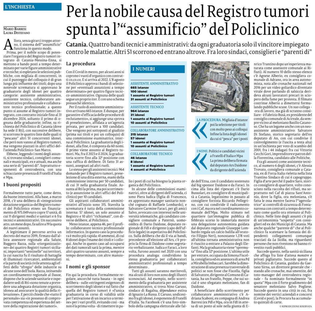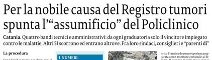 Anche la prevenzione e il registro tumori diventano pretesto e strumento per sistemare i loro cari, mentre I nostri figli scappano dalla nostra terra perché schifati da tali logiche.