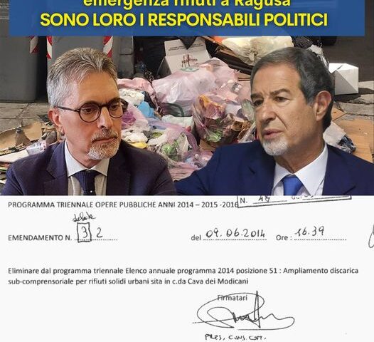 Se la situazione è diventata così grave bisogna cercarne le ragioni in chi ha governato negli ultimi anni portandoci fino a questo punto. Ci sono dei responsabili politici: il primo è senza dubbio Musumeci che con la sua inerzia e il suo disinteresse ha ignorato fino alla fine il problema; nella città di Ragusa invece, il responsabile politico numero uno per l’emergenza rifiuti è Giovanni Iacono, attuale assessore della Giunta Cassì. Nel 2014 Iacono era presidente del Consiglio comunale e in quella veste presentò e si fece approvare un emendamento per eliminare dal programma triennale delle opere pubbliche l’ampliamento della discarica di Ragusa, progetto da me lasciato alla città. Bisognava solo essere consequenziali e procedere con i lavori. Probabilmente oggi la città di Ragusa avrebbe potuto mantenere il suoi abituali decoro e pulizia, così come era solita essere fino a qualche anno fa, unica in Sicilia a non soffrire l’emergenza rifiuti… Invece…