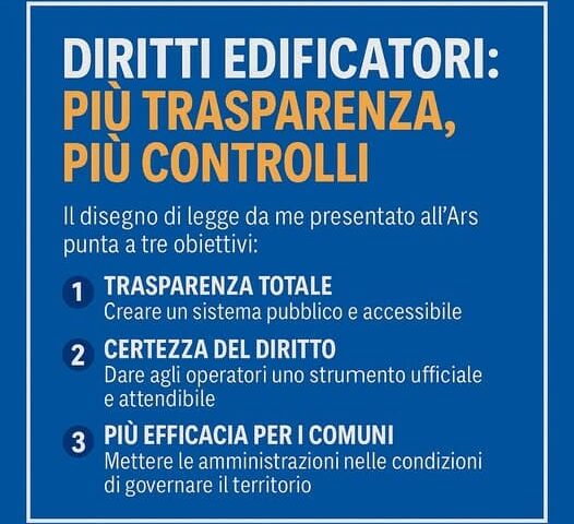 Ho depositato all’Ars un disegno di legge come primo firmatario per rafforzare un tema molto importante per la gestione del territorio: la trasparenza nella circolazione dei diritti edificatori.