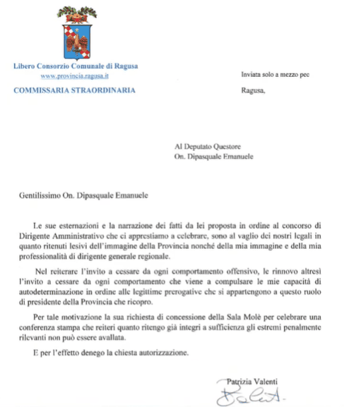 Domani ci troveremo per la conferenza stampa non nella sala Mole’ della Provincia, ma nello spazio antistante, perché il Commissario Straordinario ha ben pensato di alzare il ponte levatoio e arroccarsi nella sua reggia, per fortuna ancora per poco.
