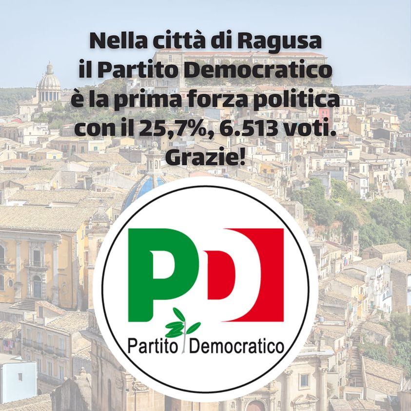 Nella città di Ragusa il Partito Democratico è la prima forza politica con il 25,7%, 6.513. Grazie!