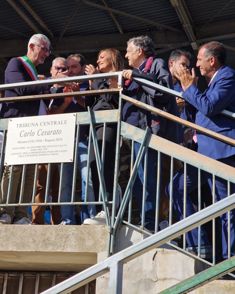 Oggi allo stadio “Aldo Campo” ho voluto essere presente alla cerimonia di intitolazione della tribuna centrale a Carlo Cesarato, una figura che ha dato tanto al calcio e alla nostra comunità e alla quale Ragusa ha deciso di rendere omaggio.