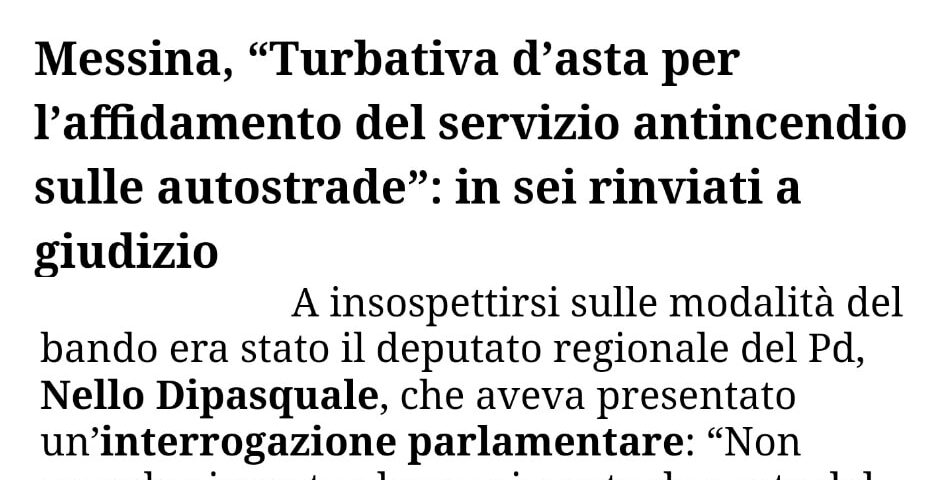 https://www.ilfattoquotidiano.it/2023/12/22/messina-turbativa-dasta-per-laffidamento-del-servizio-antincendio-sulle-autostrade-in-sei-rinviati-a-giudizio/7391406/?fbclid=IwAR1RxJTjm9wvtzRz3lzv1M-Ewti5YRaHHNxIjTovwzWsr9ORLEpvFMjGCc8