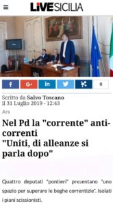 “Abbiamo dato vita, ieri, a un nuovo spazio politico interno al Partito Democratico, per chi crede che le logiche delle correnti, dei posizionamenti e della gestione del potere siano dannose per la salute del partito e voglia, invece, concentrarsi sull’azione politica. Questo è il PD dei Territori: un metodo per fare sintesi per un Partito Democratico diverso, che sia davvero la casa di tutti, prioritario occuparsi delle questioni politiche del territorio siciliano, degli enti locali, delle imprese agricole, artigianali, terziarie ed industriali della nostra isola, dei lavoratori, degli inoccupati e di chi un lavoro l’ha perso, dei soggetti svantaggiati, della tutela del patrimonio ambientale e della promozione del patrimonio artistico, archeologico e storico monumentale.