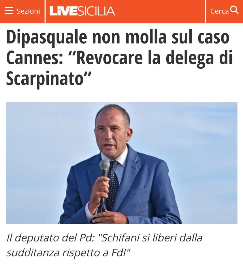 La revoca del provvedimento che impegna 3,7 milioni di euro per la partecipazione della Sicilia al Festival di Cannes non può bastare. Il governatore Schifani revochi la delega del Turismo all’assessore Scarpinato e allontani ogni possibile ombra sulla gestione di quei fondi per il futuro: soltanto così potrà dire di avere fatto chiarezza e di avere assunto le necessarie decisioni a tutela dei siciliani, altrimenti la sua sarà soltanto propaganda poco utile.