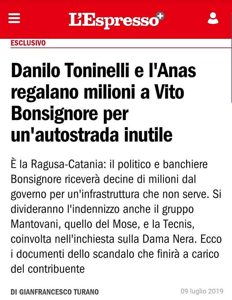 “Dissento dall’articolo a firma Gianfrancesco Turano sulla parte in cui l’opera viene definita ‘inutile’ – dichiara ancora Dipasquale – e allo stesso modo sarà d’accordo con me chiunque abbia mai percorso anche solo per sbaglio la Ragusa-Catania come è oggi. Descrivere come ‘inutile’ questa importante opera non solo è falso, ma è fuorviante rispetto alle esigenze di un territorio, quello degli Iblei, i cui cittadini hanno la necessità e il diritto di percorrere strade sicure e moderne, senza dover piangere periodicamente nuove vittime della strada”.
