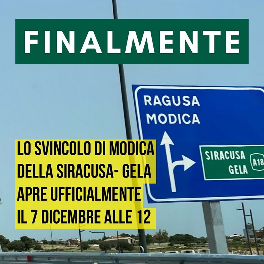 Lo svincolo di Modica dell’autostrada Siracusa-Gela sarà inaugurato il 7 dicembre alle ore 12.