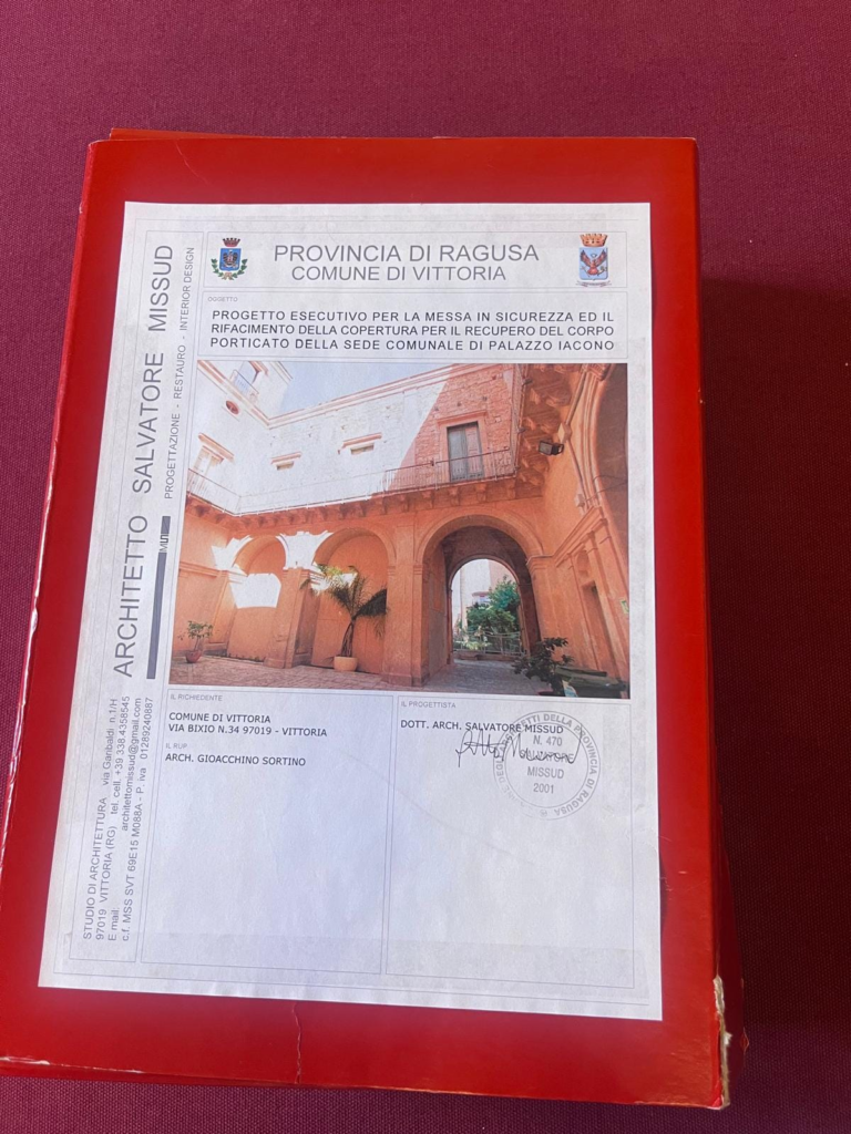 Oggi pomeriggio, a Vittoria, sono stati consegnati alla ditta incaricata i lavori di messa in sicurezza e rifacimento della copertura necessaria al recupero del corpo porticato del municipio, cioè Palazzo Iacono.
