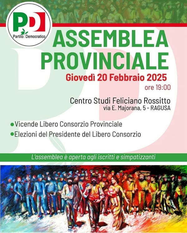 ASSEMBLEA PROVINCIALE PD: giovedì 20 febbraio ore 19, Centro Studi F. Rossitto