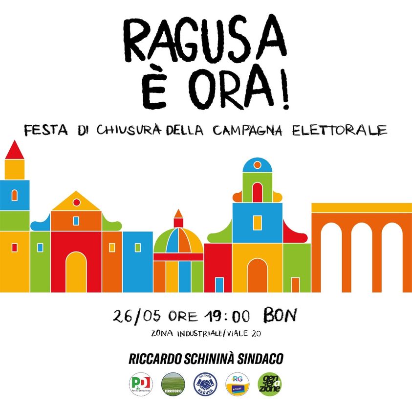 Siete tutti invitati alla chiusura della campagna elettorale di Riccardo Schininà e di tutta la squadra in corsa per la città di Ragusa.