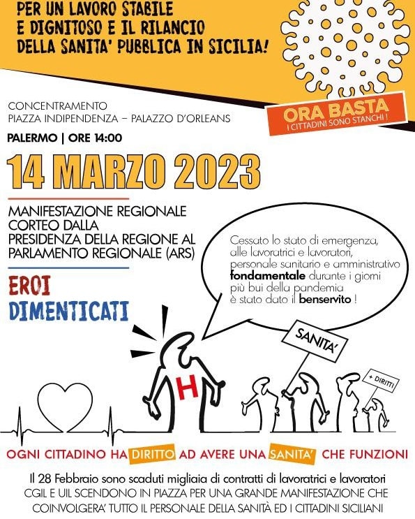 Oggi a Palermo insieme ai precari Covid della sanità siciliana nella manifestazione organizzata da CGIL E UIL.