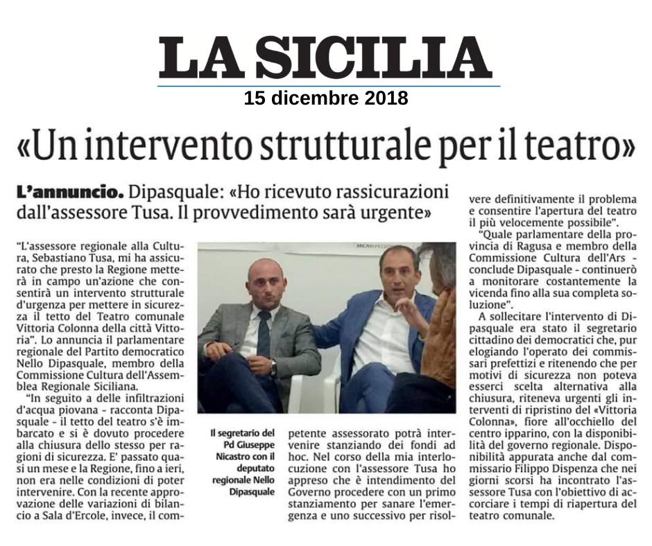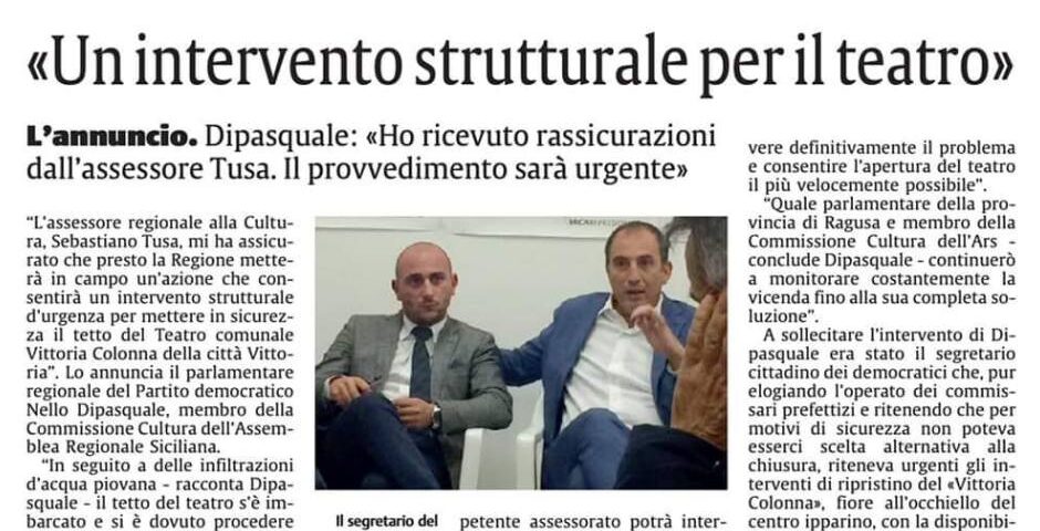 Era il novembre del 2018 quando, per colpa di infiltrazioni d’acqua piovana, il tetto dell’edificio si è imbarcato causando la chiusura del Teatro. Da subito, in diversi incontri con l’allora soprintendente ai Beni Culturali di Ragusa Calogero Rizzuto, si è cercata una soluzione che portò l’Ente a preparare un intervento di somma urgenza per 300 mila euro, finanziato successivamente dal compianto Sebastiano Susa, Assessore regionale alla Cultura.