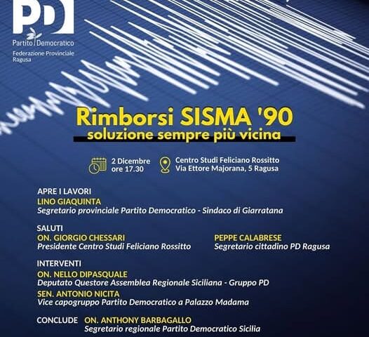 Vi ricordo che oggi pomeriggio sì terrà questo importante appuntamento sui rimborsi Sisma ’90, alla presenza del senatore Antonio Nicita e dell’on. Anthony Barbagallo.