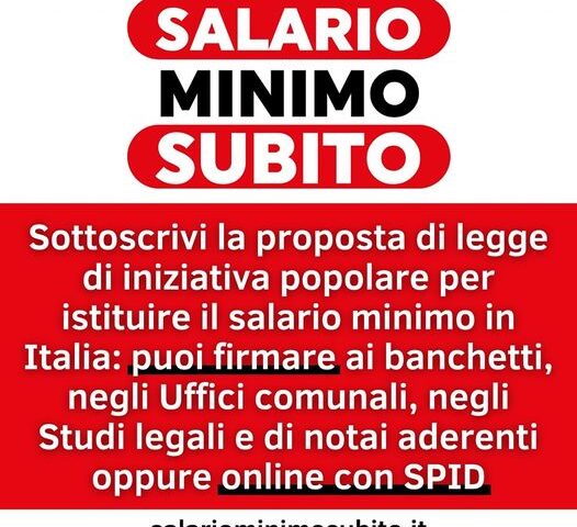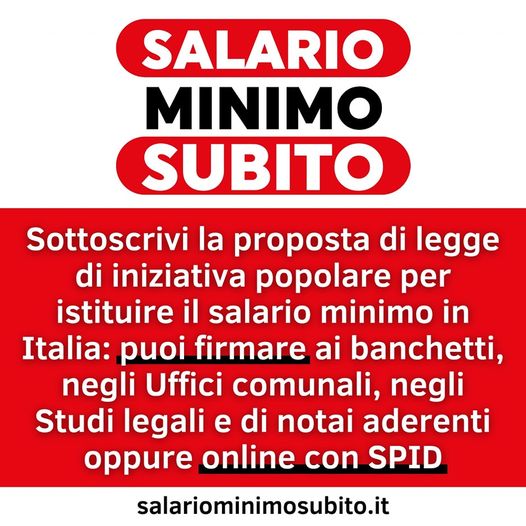 Se non hai firmato già su un modulo ai banchetti, negli Uffici comunali, negli Studi legali e di notai aderenti, puoi farlo anche online con SPID o carta d’identità elettronica (CIE) su www.salariominimosubito.it