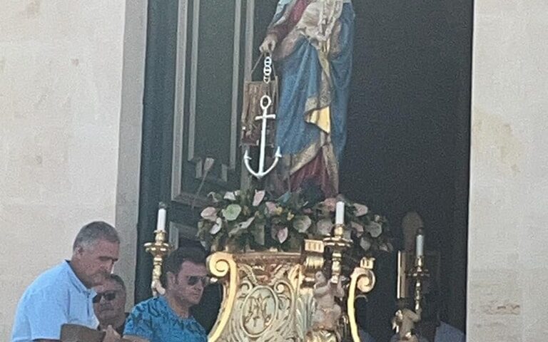 A Marina di Ragusa, appena uscito dalla chiesa di Santa Maria di Portosalvo il simulacro della Madonna col Bambino per la processione.