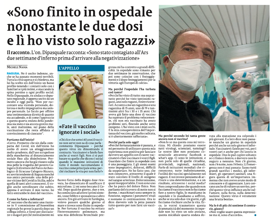 Dopo i festeggiamenti per la vittoria agli Europei, ho visto arrivare in ospedale soprattutto ragazzi, dai 15 ai 40 anni. Chi aveva ricevuto almeno una dose non ha avuto difficoltà; chi non era stato vaccinato, invece, ha avuto bisogno dell’ossigeno… Anche se giovane.