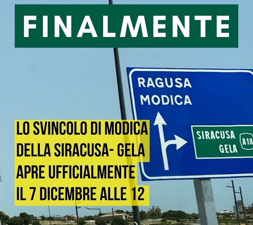 Lo svincolo di Modica dell’autostrada Siracusa-Gela sarà inaugurato il 7 dicembre alle ore 12. FINALMENTE Gli ultimi 11 km di lavori erano conclusi ormai da mesi e ancora aspettavamo di sapere quando sarebbe stato possibile attraversarli. […]