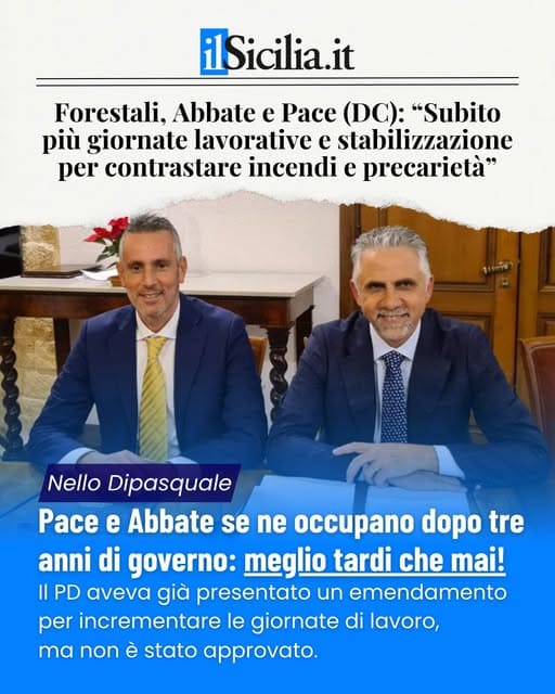 “Siamo contenti che Abbate e Pace si siano finalmente accorti dei forestali e che intendano aumentare le ore lavorative. Vorrei però ricordare che, nell’ultima manovra, avevamo già presentato un emendamento per incrementare le giornate di lavoro, […]
