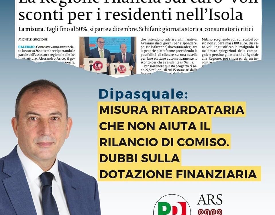 “Apprendiamo dei proclami annunciati dal governo Schifani sui grandi sconti nei biglietti aerei. Bene, salutiamo con favore queste misure ma evidenziamo il grandissimo ritardo con il quale vengono attuate e ricordiamo che l’intervento dello Stato è […]
