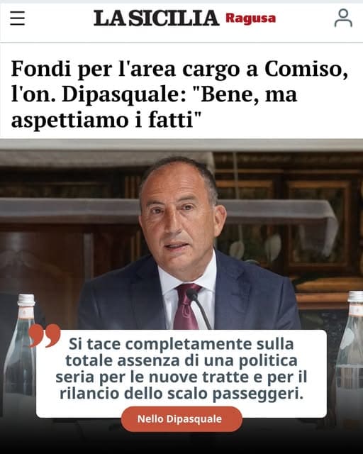 Accolgo con favore il via libera dell’Europa al progetto cargo di Comiso. È una buona notizia, certo. Ma, lo dico chiaramente, credo alle cose solo quando le risorse arrivano davvero. E visto che oggi leggo ringraziamenti […]