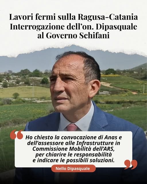 Lo stop ai lavori del terzo lotto dell’autostrada Ragusa–Catania è una situazione grave e inaccettabile. Parliamo di un’infrastruttura strategica per lo sviluppo del sud-est della Sicilia e di decine di lavoratori che oggi vivono nell’incertezza, anche […]