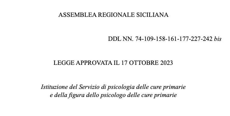 Da questo link è possibile visionare il ddl di legge sullo psicologo di base, approvato dall’ARS la scorsa settimana. https://tinyurl.com/ddl-psicologo-di-base