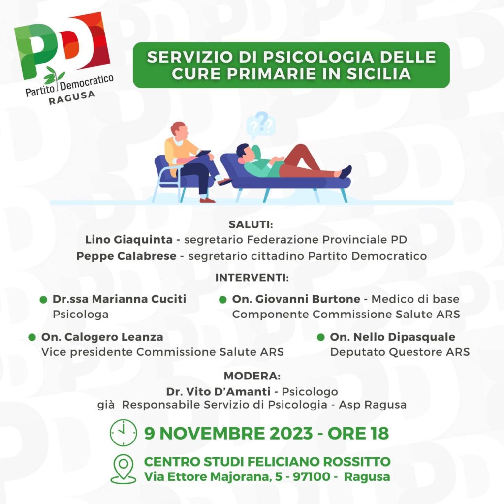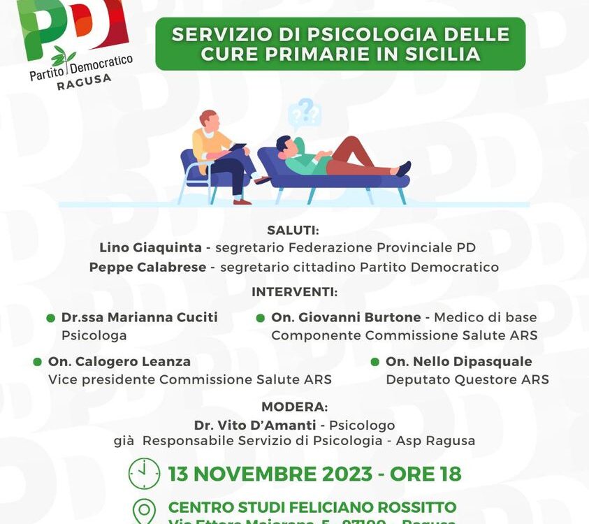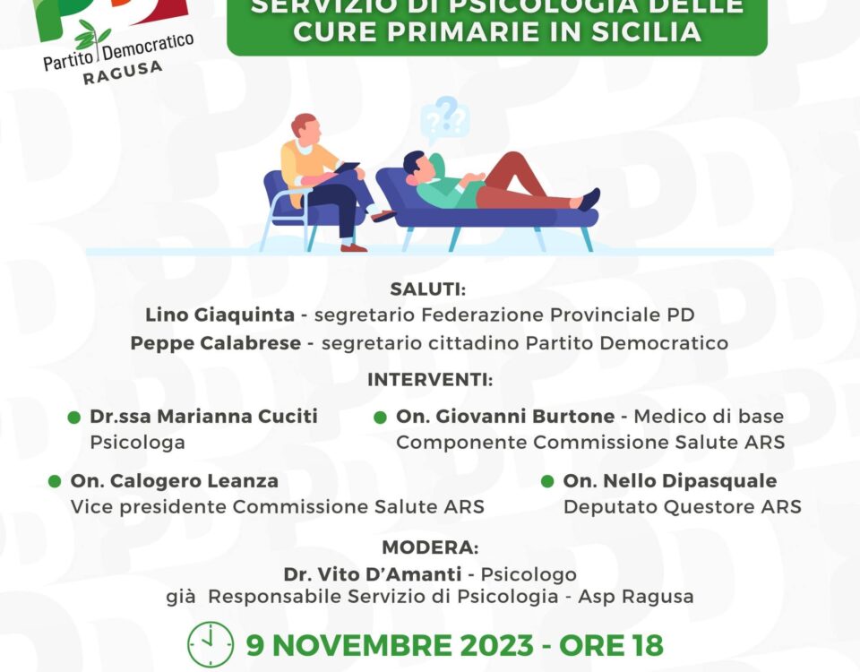 Il convegno sul tema “Servizio di Psicologia delle cure primarie in Sicilia”, organizzato dal Partito Democratico ibleo, inizialmente previsto per il 9 novembre, si terrà invece lunedì 13 novembre, sempre a partire dalle ore 18 presso […]