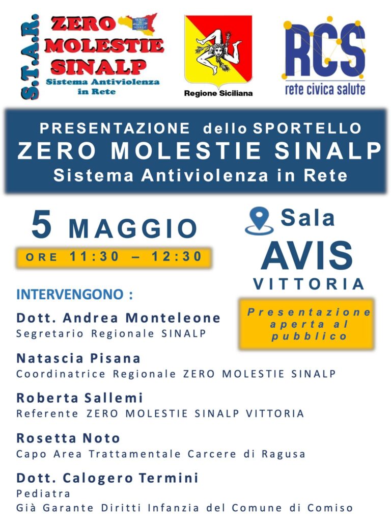 Sono stato questa mattina a Vittoria, presso la sala AVIS, alla presentazione dello Sportello “Zero Molestie SINALP – Sistema Antiviolenza in Rete”.