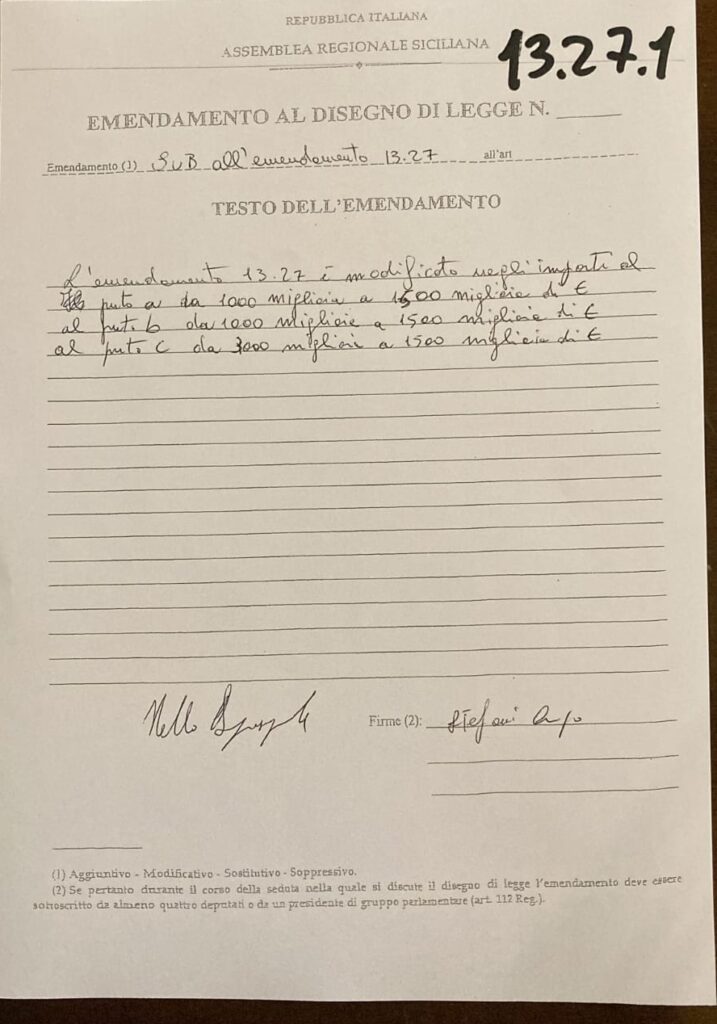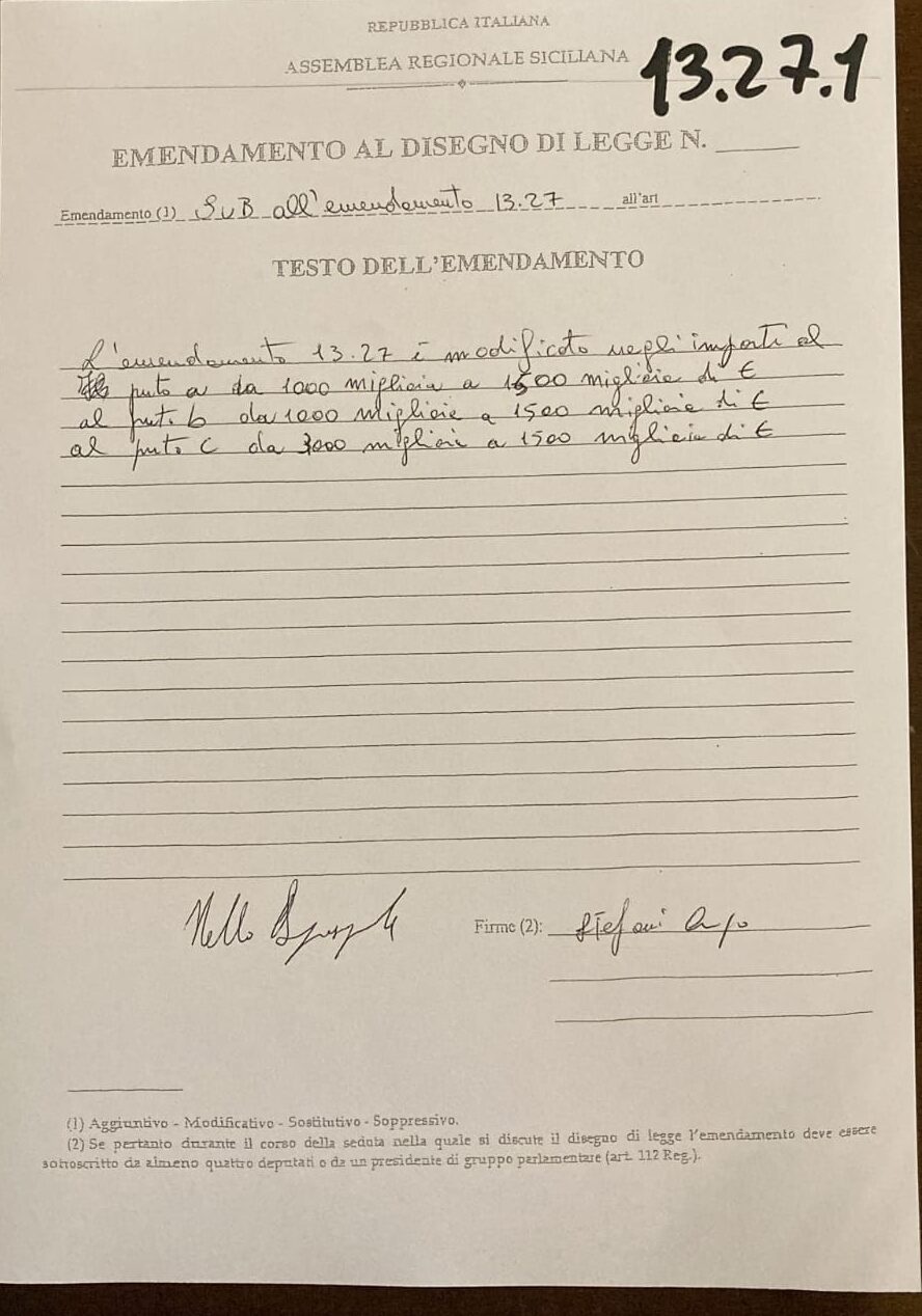 Quello che segue, invece, è l’emendamento che ha ripristinato le risorse per Ibla.